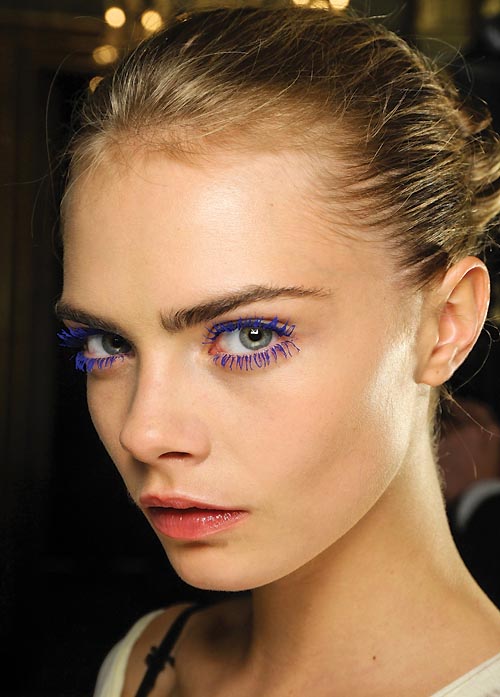 Máscaras coloridas são outra excelente maneira de elevar qualquer maquilhagem aborrecida, de a tornar irreverente e única. Colocam-se como uma máscara normal. Para atingir um resultado extravagante passe antes um primer de pestanas com uma base branca e só depois o rimel com cor. Que tal as Great Lash Mascaras da marca Maybelline (~$5)?
